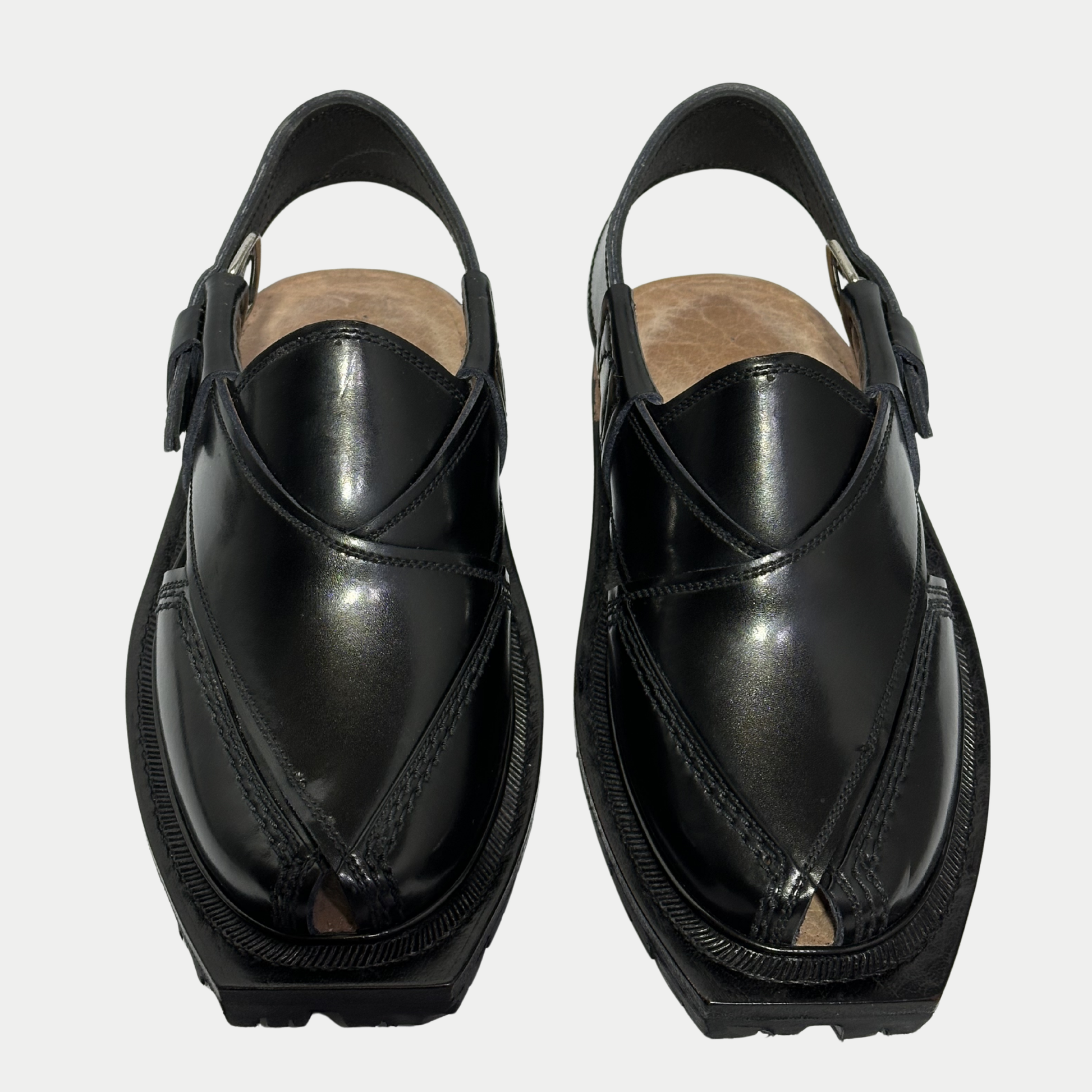 Classic Black Leather Norozi—a masterfully handcrafted traditional accessory that blends timeless elegance with authentic craftsmanship. Each piece is meticulously created using genuine black leather, showcasing the rich heritage of Norozi design. Perfect for those who appreciate quality artisanal work and cultural authenticity. A versatile addition to any wardrobe that celebrates traditional Pakistani craftsmanship with modern style.